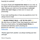 Answer: Thank you so much to those sharing such amazing stories about our company. We really appreciate all the positives vibes! As always, any customers who need further assistance do not hesitate to reach out via email or our Live Chat option, we would be pleased to provide support!