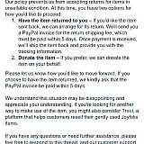 Hi Jenna! Thank you for taking the time to leave a review. We apologize if our refund policy was missed during your shopping experience. Our policies are clearly outlined on every webpage and during checkout. To address your concerns, our customer service team has reached out to offer personalized return support. We look forward to taking care of you!