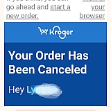 Kroger cancelled our order without notifying us. Now they won't refund my grocery money. The week before Christmas. Shame on you Kroger.
