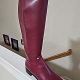 I writing to express my extreme dissatisfaction with Michael kors return policy. I purched the Britt riding boots in black cherry picture in line was beautiful. Unfortunately when I received the boots they were freaking maroon with a tint of purple just ugly.apparently whoever does the colors must be color blind. Any other company that I have order from never had a problem with a exchange from purchasing on, BUT MICHAEL KORS DOSNT WANT TO DO THAT THEY WANTED ME TO PAY FOR THE EXCHANGE! SO I ASKED THE CUSTOMER SERVICE REP.YOU WANT NE TO PAY DOUBLE FOR ONE PAIR OF BOOTS THAT I AM WANTING TO EXCHANGE? AND THE GUY WAS LIKE YES THAT'S WE DO.I DIDN'T REALLIZE MICHAEL KORS WAS REALLY SHADDY AND MUST NOT BE DOING GOOD...I WILL NEVER PURCHASE ANOTHER THING FROM THEM, AND NEITHER WILL MY FAMILY.