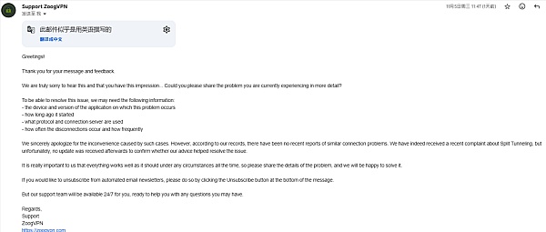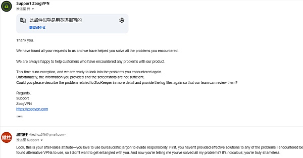 I've contacted customer service multiple times, but their responses are always the same—just bureaucratic jargon—and they haven't solved any of my problems. I didn't want to get involved with them, so I switched to another VPN, but recently they shamelessly emailed me asking for a positive review. I explained why I couldn't give them a good review: their product and after-sales service are absolutely terrible.